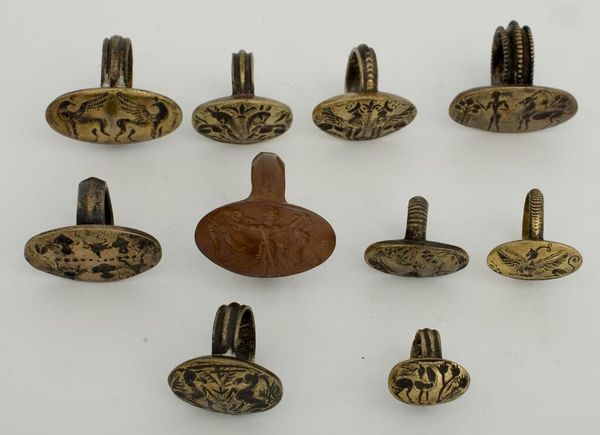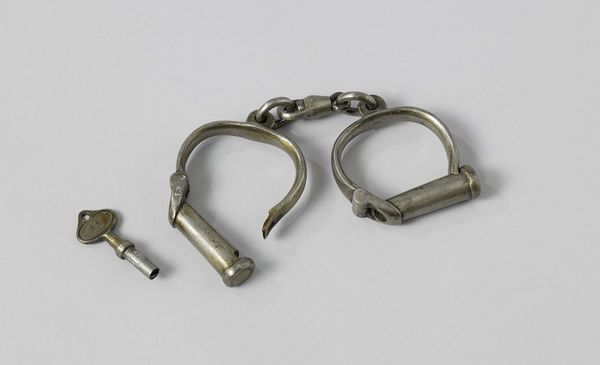 Curator: What a curiously haunting little composition. It has an oddly sinister aura. Editor: It’s a still-life photograph dating from around 1866, presenting "Two Samples of Telegraph Cable for Floating Mines and a Break". So it sounds a bit sinister for a good reason, actually! Curator: Floating mines? These seemingly innocuous bits of twisted metal...they were literally part of a larger instrument of destruction? It really speaks to the hidden potential within seemingly mundane objects, and reminds me of all of those ubiquitous digital symbols we now fear. Editor: Absolutely. Submarine telegraph cables revolutionized communication, but were then repurposed for warfare. There's such dark irony at play when new technologies intended to connect people end up weaponized. That historical shift echoes right through this image. We’re also seeing appropriation as these utilitarian cables were deliberately presented, almost glorified, as still life objects in an art photograph. Curator: The cool tones also have an emotional pull, as do the spiraling lines and cylindrical shape – archetypes of control. Looking closer, what are the inscriptions at each end? Editor: Well, each cylindrical cable sample is capped with circular pieces that contain radial inscriptions – "MC 1191 1611 3W". Curator: I find that such explicit labelling strips them of much symbolic value, like brands or signs, and pushes us back into the tangible history and moment. Though I still think there is power to these visual metaphors. What do you feel the image reveals about cultural anxieties of the time? Editor: Well, at the time there were tremendous public anxieties around invisible technologies—electricity, telegraphy—and the impact of rapid innovation on warfare. Representing cable fragments this way visually reframes the narrative of these industrial components, speaking to the transformative shifts within the mid-19th century itself. Curator: Indeed. When you think about it that way, what appeared a still, quiet piece speaks rather profoundly of its era and humanity's ever complicated relationship with new discoveries.