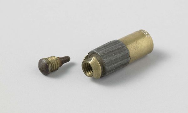 Dimensions: (1) length 5.4 cm, (1) diameter 1.9 cm, (2) length 5.3 cm, (2) diameter 1.7 cm, (3) height 2.2 cm, (3) width 1.4 cm, (3) depth 1 cm
