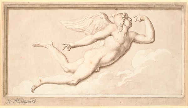 This drawing, ‘Two Angels,’ of unknown origin, captures two cherubic figures rendered in muted tones of ink on paper. The composition centres on the intimate embrace of two angels seated on a cloud. Their forms, delineated with delicate lines, blend softly into the ethereal setting. The artist uses hatching and cross-hatching to create depth, giving their bodies and wings substance. The monochromatic palette focuses attention on the tonal gradations, from the light washes that define the clouds to the darker, more concentrated strokes that sculpt the angels' forms. The visual structure of the drawing invites contemplation on themes of innocence and divine affection. The angels' proximity suggests a unified being, their gentle interaction destabilizing typical notions of the individual. The drawing is as much about form as it is about the idea of transcendence. It presents a semiotic system where the elements combine to evoke spirituality. The lack of sharp, definitive lines makes the piece evocative and mysterious. It reminds us that art’s meaning is always shaped by how we see and interpret it.