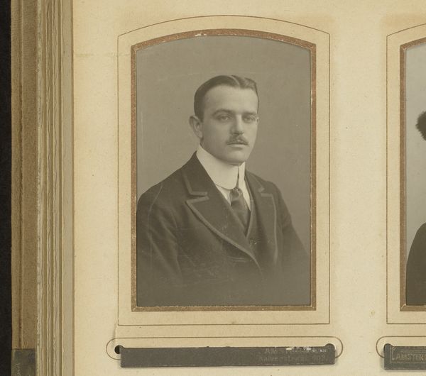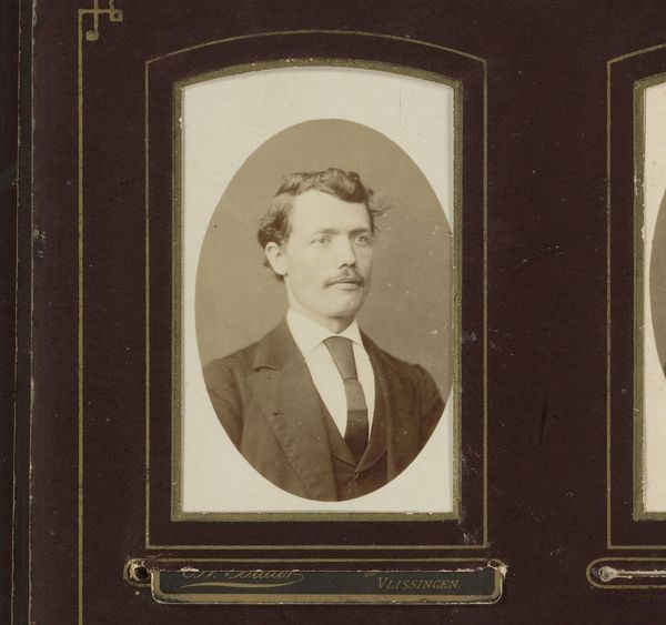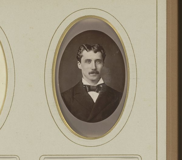This portrait of a man was made by Emile Baudoux sometime in the 19th century. The photograph is small, contained within an oval frame, emphasizing the sitter's face and upper body. The muted tones and smooth texture lend a sense of timelessness and formality. Consider how Baudoux uses the oval shape to isolate and highlight the individual, creating a sense of intimacy. The man's gaze, directed slightly off-center, introduces a dynamic tension, suggesting an internal world beyond the surface. The composition draws attention to the sitter's features – his mustache, hair, and clothing. Each element serves as a signifier of identity and status. The choice of black and white further strips away the immediate and contextualizes the sitter within a broader social and historical framework. It invites us to look beyond the surface and engage with the formal elements. This photograph serves as a powerful reminder of the enduring nature of portraiture and its ability to negotiate between individual representation and broader cultural narratives.
