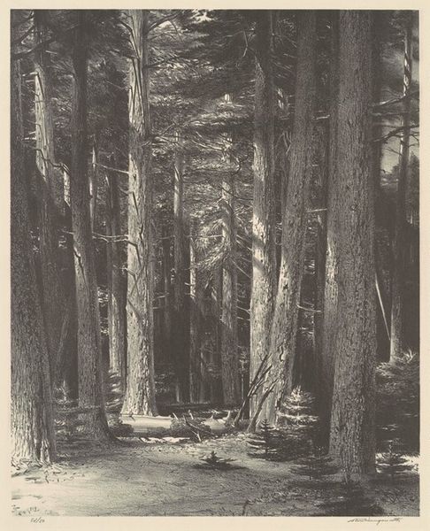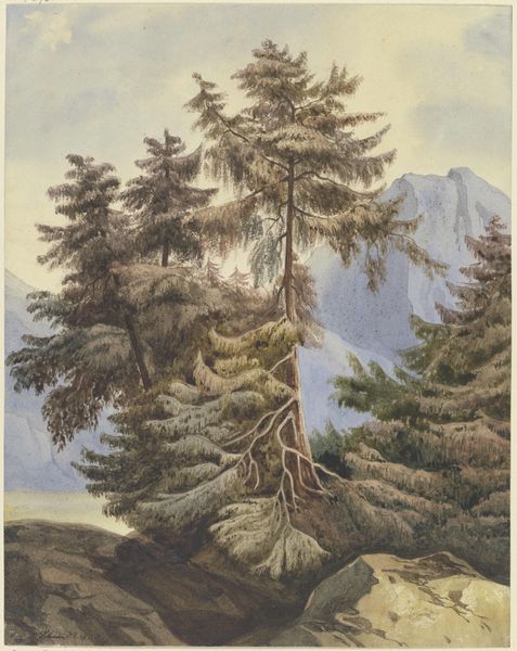 This is Ludwig Daniel Philipp Schmidt's watercolour and pen and ink drawing, "Baumstumpf am mit Tannen bewachsenem Abhang," now at the Städel Museum. The dominant visual experience here is one of verticality, sharply contrasted with the horizontal sprawl of the forest floor. The composition directs our gaze upward through the towering trees. Schmidt's use of colour, with the darker greens and browns, evokes a sense of depth and mystery. The stark, almost sculptural presence of the tree stump in the foreground invites a deeper reading. It acts as a signifier of nature's decay and regeneration. The stump, adorned with moss, visually challenges fixed notions of life and death. The careful rendering of texture – the rough bark of the trees versus the soft moss – emphasizes the materiality of the scene. It highlights the Romantic era's fascination with the sublime power and indifferent processes of nature. This artwork destabilizes the viewer's expectations, prompting contemplation on nature's cyclical processes.