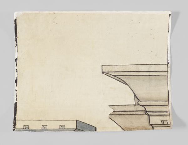 Curator: Looking at "Design for a Stage Set at the Opéra, Paris," created sometime between 1830 and 1890 by Eugène Cicéri, what strikes you? Editor: A sort of ghostly, skeletal city emerges—a ruin in waiting or a vision half-formed. It's melancholic, unfinished... Curator: Yes, incomplete, or maybe just barely coming into being. You sense its unrealized potential? It’s executed on paper using drawing and printmaking techniques. Notice the underlying grid, visible even through the watercolor washes? Editor: The grid anchors what would otherwise feel purely fantastical, creating this intriguing tension between control and freedom. You know, thinking of stage design...are we seeing a reflection on the city itself as theater? Curator: Precisely. Cicéri, who worked extensively at the Opéra, seems to propose Paris as a stage—each street a scene, its citizens the players. Editor: The monochromatic palette really reinforces that sentiment; like we're looking at a memory, faded and dreamlike, just catching wisps of architectural detail... almost feels like looking at the foundation for an untold dream. Curator: Consider how the stage set itself functions as a miniature model of power, the set’s implied architecture and the sculptures on display seem to affirm certain hierarchies, inviting the audience to place themselves within that structure. Editor: Power is absolutely right, there’s a real sense of spectacle, but tempered with a deliberate restraint. Curator: Ultimately, I'm drawn to how this study prompts me to reimagine familiar spaces—urban architecture transforming into fleeting emotion on the operatic stage. Editor: Me too. This fragile cityscape feels incredibly rich with implied narratives, potential dramas waiting in the wings. I keep imagining figures animating it.