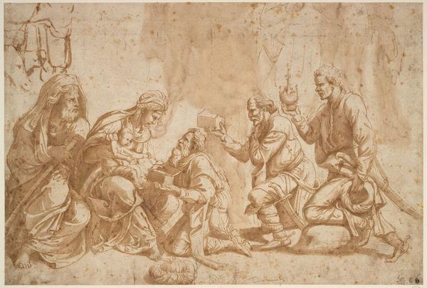 Editor: So, this is Christian Wilhelm Ernst Dietrich’s etching, "Christ Presented to the People." I find the stark lines and the almost frantic energy of the crowd really striking. What stands out to you? Curator: Dietrich’s image, created in the 18th century, draws from a long history of representing the body as a site of political power and suffering. Consider how Christ's vulnerability in this moment invites the viewer to contemplate broader questions of injustice and authority. Editor: I hadn't thought about it in terms of political power... Curator: How does the composition of the work contribute to the narrative of oppression and control? Editor: I guess the crowd pressing in, surrounding Christ, makes his isolation even more pronounced. I see it now. Curator: Exactly. And by implication, the artist implicates all of us in this act of judgment. Editor: That’s a powerful, if uncomfortable, message. I'll never look at it the same way again.