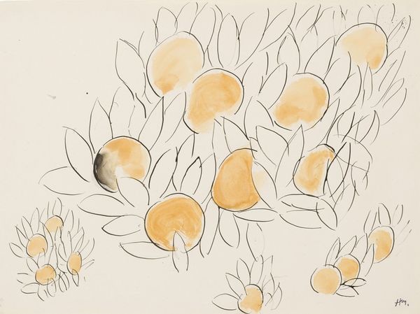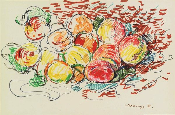 Sattar Bahlulzade made this work, "Pomegranates and Quince," using pencil and felt pen on paper. Its loose and energetic style can be connected to the changing social context of mid-20th century Azerbaijan, then part of the Soviet Union. Looking at the image, notice the vibrant colors and simplified forms. These visual choices relate to a broader artistic movement away from Soviet Realism, which had been the official style. Bahlulzade and others began exploring more subjective and expressive modes. This shift wasn't just about aesthetics. It reflected a desire for greater cultural autonomy and a move toward a more individualized artistic voice within a highly controlled political system. Historians examine artists' biographies, exhibition records, and cultural policies to better understand the meaning of artworks. In this case, Bahlulzade's work offers a window into a time of cultural change. It shows the complex negotiation between artistic expression and social constraints.