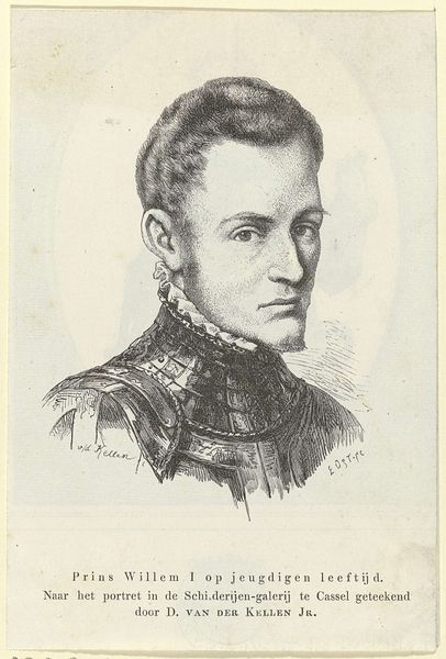 Curator: Oh, there's something wonderfully melancholic about this one. Editor: Indeed. We're looking at "Portrait du Sergent Fourrier," rendered in oil paint by Jean-Jacques Henner in 1852. Notice the somber palette, dominated by dark blues and browns. It lends a certain weight to the subject. Curator: It really does. Almost like he’s carrying the weight of the world, or at least the army, on his shoulders. And that little spark of red, in the epaulettes... It's like a tiny rebellion against all that gloom. A little pop! Editor: Precisely. It’s a clever formal device. The placement of red draws your eye upward, creating a visual pathway through the composition, from the base of the portrait up to the subject's gaze. The artist skillfully contrasts it with the muted background. Curator: Makes you wonder what he’s thinking, doesn’t it? About war, home, or maybe just what he's having for dinner? The vagueness of it is kind of beautiful. Editor: Note also the academic treatment of light. The artist has used a restrained chiaroscuro, subtly modeling the Sergeant's face to suggest not only form, but also a certain depth of character. There's a story there, hinted at by the interplay of light and shadow. Curator: Like all the best stories! I’m left wondering who he left behind. What kind of battles—emotional and otherwise—he'd been through. It feels more intimate, you know, like catching him off-guard. A very private moment amid all the pomp. Editor: It's certainly a work that repays careful observation. The artist has achieved a powerful effect through subtle manipulations of form, color, and light. A study in controlled emotional intensity. Curator: Absolutely. Makes you ponder the human stories hidden beneath the surface of history, doesn't it? It makes it all real, more approachable somehow. Editor: Indeed, a glimpse into a soul from another time.