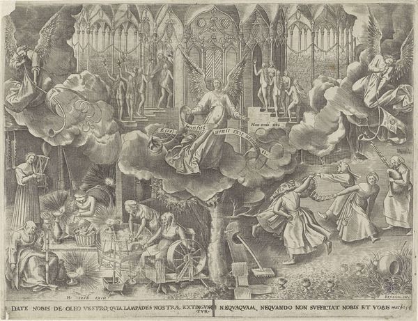 Editor: So here we have Matthias Withoos’ “Vanitas. Still Life in a Landscape,” painted in the 1660s. All those skulls give it a somewhat somber feeling, don't you think? What do you make of the objects chosen for this landscape? Curator: Somber is one way to put it! It's like a carefully staged theater of mortality. See the globe, the books, the hourglass? These are all symbols of earthly knowledge and time, but they're juxtaposed with, as you pointed out, skulls and bones. Even that beautiful landscape with a strange monument in the background cannot escape it all. Do you think Withoos is saying anything more with the positioning of all of this? Editor: Perhaps it's about the fleeting nature of life despite our attempts at lasting achievements? Like, we build obelisks, acquire knowledge, but in the end, well...skulls. Curator: Precisely. It's that Baroque preoccupation with *memento mori* – remember you must die! This wasn't meant to be morbid though, oddly enough, but a reflection on the need to spiritually recenter. The vanitas paintings reminds one to reevaluate the truly important things. Do you find that message coming through despite the skulls? Editor: It does, actually. I initially thought of the skulls as purely negative, but placed among objects representing accomplishment, they offer, perhaps, a good perspective. Curator: Good perspective indeed, not everything ends, just because this life does! It is a bit dark still. Even for me! Editor: It certainly brings a different feeling from how I first saw the artwork. Curator: Exactly. These paintings can sometimes teach the keenest lessons on a deeper appreciation of all.