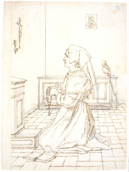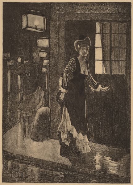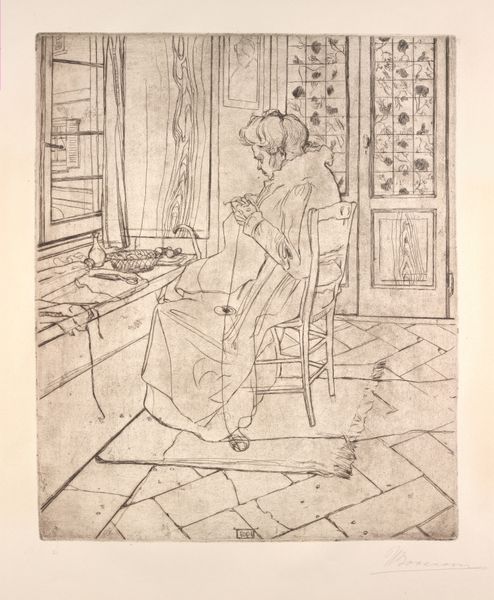 Curator: My first impression? Solitude, but not necessarily loneliness. It feels...contemplative. Editor: Yes, and the use of line definitely amplifies that mood. We’re looking at Umberto Boccioni’s 1907 drawing, ink and pencil on paper, titled “Mia madre che lavora,” or “My Mother Working.” There’s such intimacy in this domestic scene. Curator: Intimacy, certainly, but consider the symbolic weight. Sewing, mending, weaving—these are age-old female roles, linked to creation, care, and holding together the very fabric of society. Yet here, the woman is alone in what feels like a vast interior space. The symbolism speaks volumes about domesticity as both comfort and confinement. Editor: Precisely. And in the context of Boccioni’s burgeoning Futurism, it’s fascinating. While his later works celebrated the dynamism of the machine age, this drawing roots us firmly in the domestic sphere, offering a glimpse into the artist’s socio-political background. He’s known for championing modern life, and yet he depicts his mother engaged in such a traditional activity. Curator: The symbolism, of course, could be read as subversive as well. Look at how the light falls, highlighting her work, her presence. Is this an acknowledgment, a quiet rebellion perhaps, against the Futurists' often bombastic celebration of masculinity and progress at the expense of traditional values? There's almost a hallowed, iconic quality to the way she is rendered. Editor: I appreciate your reading of that possibility! I think his commitment to documenting the everyday elevates the quotidian. By placing her within his artistic purview, Boccioni subtly acknowledges her contribution, challenging any potential societal marginalization. What better way to enshrine her? It almost feels like a conscious decision to imbue her traditional role with artistic dignity. Curator: It certainly makes one reconsider the threads that connect even the most avant-garde movements to the traditional realities they sought to disrupt. This isn’t just a portrait; it’s a visual artifact holding complex, sometimes conflicting, cultural narratives. Editor: A powerful image that encapsulates the complexities of family, societal roles, and artistic evolution. The symbolism he explores extends beyond portraiture.