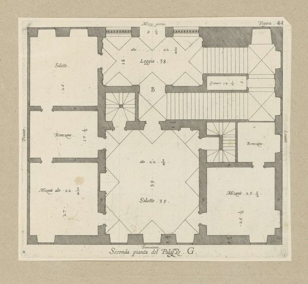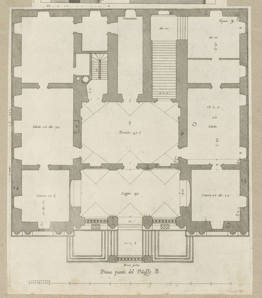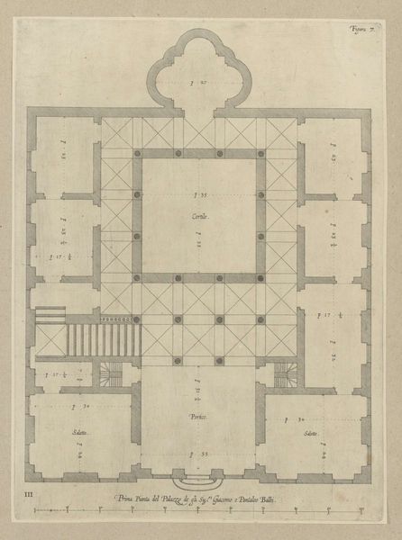 Nicolaes Ryckmans made this floor plan of the Palazzo Carrega-Cataldi in Genoa with pen and brush in gray ink. This drawing provides a window into the spatial organization of an elite Genoese residence. Constructed during the city's golden age of maritime trade and banking, the Palazzo would have been a stage for the performance of power. The plan reveals a careful choreography of movement and access, with grand salons for receiving guests and more private chambers for family life. The imposing scale and symmetrical layout speak to the owner’s wealth and social standing. Ryckmans was active in the Netherlands. How did the artistic conventions of architectural representation travel across Europe? What role did images play in shaping social aspirations and cultural exchange? To further understand this work, archival records of the Carrega family and studies of Genoese social history would provide invaluable context. Art becomes meaningful through the web of social and institutional relations in which it exists.