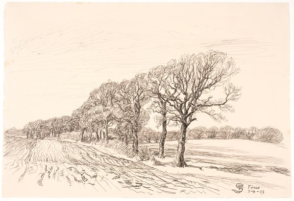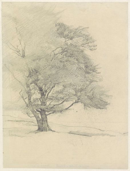 Georges Michel made this drawing of a road between wooded slopes using graphite on paper. The soft, grainy texture of the graphite allows for subtle gradations of tone, creating a sense of depth and atmosphere. You can see the artist has used hatching and cross-hatching to build up the shadows and define the forms of the trees and the road. Drawing was a fundamental skill for artists of Michel’s era, serving as a means of observation, documentation, and preparation for larger works. In terms of labor, it is evident that the drawing was executed relatively quickly and efficiently, likely en plein air, capturing a fleeting moment in the landscape. The immediacy of the graphite medium lends itself to the impressionistic style, where capturing the essence of a scene takes precedence over meticulous detail. Michel's choice of materials, and the way he used them, reflects a shift towards a more direct, personal engagement with the natural world.