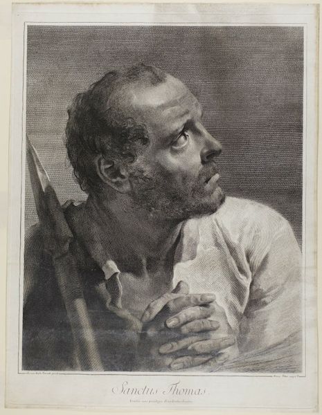 This print of Apostle Thomas was made by Giovanni Marco Pitteri using etching and engraving techniques. Pitteri’s tonal variations are achieved through careful manipulation of line. Look closely, and you'll see how the density of etched and engraved lines creates the illusion of light and shadow, giving volume to Thomas's face and clothing. The repetitive, labour-intensive process of etching and engraving demands patience and precision; the artist has to be committed to their art. The finished product is a testament to the engraver’s skill, and also the sophisticated print market of the time, which elevated such works to the status of art objects, not merely reproductions. In the end, this is not just a picture of Saint Thomas, but a complex product of artistic labor.