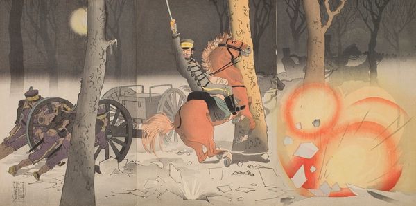 Kobayashi Kiyochika’s woodblock print captures scouts on horseback amidst a heavy snowfall, evoking a sense of foreboding. The samurai sword—a symbol of honor, authority, and martial prowess—is prominently displayed. The image invites us to contemplate the evolution of symbols across cultures and eras. Consider the horse, long associated with power and nobility. From the steeds of ancient Greek gods to the warhorses of medieval knights, its symbolic presence spans continents and epochs. The motif transcends mere representation, engaging our subconscious with themes of courage and dominance. The snow, too, acts as a powerful symbol. Its purity may hint at a desire for cleansing or renewal. The image echoes the cyclical return of cultural memory, a constant interplay between past and present, subconscious and conscious understanding.