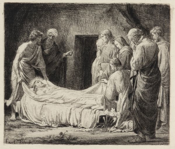 Johann Caspar Lavater created this small oil-on-panel painting of the Entombment of Christ sometime before his death in 1801. Here, the artist's technique enhances the scene's somber mood. Lavater applied the paint in thin, translucent layers, creating a subdued, almost ghostly effect. The dark background and muted colors intensify the feeling of grief and loss. See how the artist built up the image through many layers of glazing to create a sense of depth and shadow. This method, which can be painstaking, was often favored for its capacity to render subtle gradations of tone and luminosity, especially when depicting skin. In the end, it is not only the composition that conveys the scene's emotion, but also the very way in which it was brought into being. By focusing on such elements, we can better appreciate the artistry involved, moving beyond conventional categories of fine art.