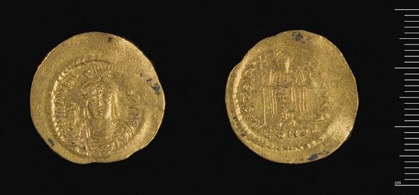 Editor: So, this is a gold coin of Herakleios by Abd-al-Malik, and it's housed here at the Harvard Art Museums. The detail is striking given its size. What can you tell me about it? Curator: Let's consider this coin's materiality. Gold, of course, signifies wealth and power. But who controlled the gold mines, and how was the metal extracted and processed? These are critical questions. Editor: I never thought about the mines. How does that relate to the imagery? Curator: The imagery, initially Christian, was adapted by Abd-al-Malik. This speaks to evolving power structures and the labor involved in maintaining those structures. Who benefited from this shift in power? Editor: That's a perspective shift I hadn't considered. Thanks! Curator: Indeed. Examining the material processes opens up a richer understanding of history beyond just the faces on the coin.