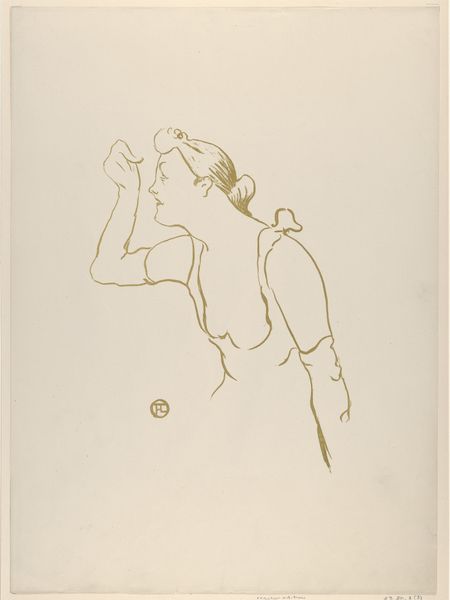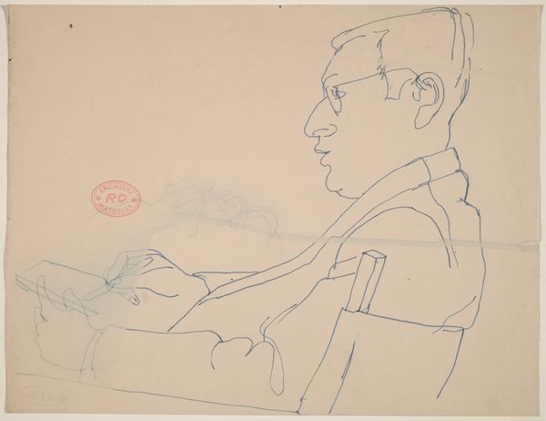 Curator: This is Sir Max Beerbohm's "Bravura: Sir William Orpen," currently held in the Tate Collections. I find the ethereal quality of the piece immediately striking. Editor: Yes, it's very light, almost ghostly, isn't it? Look at the barest suggestion of line, the way the pigment seems barely there. The artist's tools look so immediate and simple. Curator: Beerbohm's caricatures are fascinating studies of personality. Note how Orpen is depicted surrounded by mirrors, inflating his own reflection, almost like soap bubbles about to burst. The symbolic meaning here speaks of vanity. Editor: Right. And the mirrors themselves--the materials of their construction, the labor involved in making them--speak to the economics of image-making and self-representation during that period. This was an era of rising industrialization. Curator: I see the artist's commentary on the dangers of unchecked ego. Editor: I'm drawn to the tension between the delicacy of the medium and the potentially sharp critique. Curator: A delicate dance of observation and commentary. Editor: Indeed; it speaks to the power of art to reveal truths about both its subject and its context.