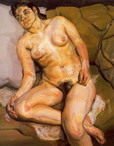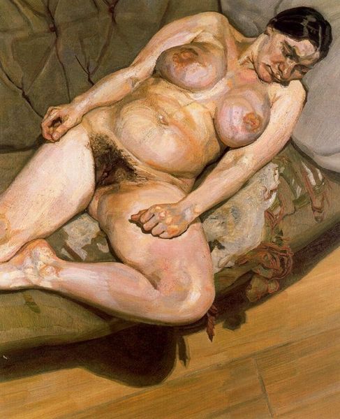 Lucian Freud’s painting, "Naked woman on a sofa" is an intimate oil on canvas. The colors are like flesh itself, aren't they? Raw, pinkish, and vulnerable. I love the way Freud uses paint; it's not just color, it's a substance, almost like another skin laid over the canvas. You can see every stroke, every decision. It's honest, like a map of the process itself. Take a look at the way he’s rendered the folds of skin around the woman's stomach. It's not pretty, but it’s real. And in that reality, there’s a kind of brutal beauty. Each mark is a testament to the act of seeing, of wrestling with form and light. You could see a lineage from Rembrandt through to Jenny Saville in the way Freud just lays it all bare. These painters remind us that art is about more than just what we see; it’s about how we see, and what we choose to reveal.
