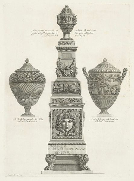 This etching by Giovanni Battista Piranesi depicts a vase adorned with bull heads, symbols deeply rooted in ancient mythologies. In classical antiquity, the bull was often associated with power, fertility, and divinity, notably linked to deities such as Zeus in his bull form. The vase’s stierenkoppen, or bull heads, echo motifs found in Minoan Crete, where bull-leaping was a central ritual. We see similar veneration in the Mithraic mysteries, where the tauroctony—the slaying of the bull—represents sacrifice and renewal. This act carries intense emotional weight, symbolizing the transformation of life through death. The bull’s image resurfaces time and again, shifting from sacred to secular, from symbol of power to emblem of sacrifice. Its enduring presence in art reflects our collective, subconscious fascination with its primeval force.