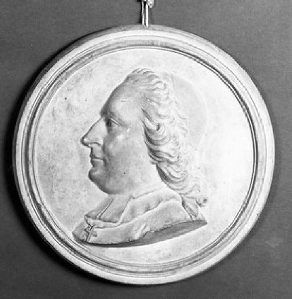 Editor: Here we have Giovanni Battista Nini's "Louis XVI", a small portrait medallion. It’s striking how the artist captured such detail in such a small scale. What can you tell me about the materials and methods? Curator: The materiality speaks volumes. This is likely unglazed stoneware, readily reproducible. Its purpose isn't just aesthetic. It signals Louis XVI’s image as a commodity, a political tool circulated amongst the populace. How does that mass production alter our view? Editor: It makes me rethink the traditional idea of portraiture as unique and precious. Curator: Exactly. We see the means of production shaping the artwork's meaning and reach. Editor: That's a really interesting way to look at it. Curator: Indeed. The materials and manufacturing processes are integral to understanding its impact.
