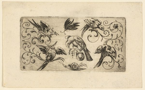 This print, *Allerlei kleine dieren,* meaning 'various small animals,' was made by Giacomo Franco in Venice around the turn of the 17th century. It's made from a metal plate, likely copper, that was incised with lines to hold ink, then printed onto paper. The impact of this medium is immediately clear. The crisp lines define the various creatures, giving them a scientific precision. Yet the printing process, while capable of great detail, is also inherently reproductive. This print wasn't conceived as a unique artwork, but rather as a means of disseminating images of the natural world. Consider the labor involved: the skilled hand of the engraver, the press operator, and the distribution networks that carried these images far and wide. Such prints democratized knowledge, making it accessible to a wider audience than ever before. It's a testament to the power of printmaking, not just as a medium of artistic expression, but as a tool for shaping our understanding of the world around us. It encourages us to appreciate the pivotal role of materials, making, and context in understanding the full meaning of an artwork.