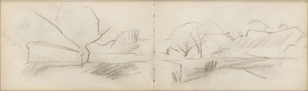 Curator: Welcome. Today we’re looking at George Hendrik Breitner’s “Landschap met boerderij,” a landscape with a farm, likely created between 1883 and 1885. The artwork, rendered in pencil, captures a seemingly quiet, unassuming rural scene. Editor: You know, when I first saw it, I thought, "Hmm, ghost story prelude?" It's so wispy, like a half-formed memory of a place rather than the place itself. It's kind of brooding, even. Curator: It's interesting that you say that. Breitner, known for his depictions of Amsterdam street life, frequently explored social issues related to urban change. Consider that even in a tranquil drawing like this one, we might discern the anxieties of rural decline as industrialisation gained ground in Dutch society. Perhaps Breitner subtly expresses that tension here? Editor: Maybe, maybe not. Honestly, my brain just went straight to gothic literature. The sketchiness of it, like he caught the scene vanishing before his very eyes! Though, if we're going with anxiety... there’s definitely something uneasy about it. The way the roof looms, kinda heavy? The left side just dissolves. Feels incomplete. Curator: Exactly! Breitner's impressionistic technique does lend itself to multiple interpretations. He prioritises the impression of light and shadow. Think about how this technique shifts the artwork away from pure documentation towards capturing subjective experience and atmosphere. That would have carried some significant weight when discussions arose concerning art's social role! Editor: Right! It’s not just a farm. It’s a *mood* farm! I'm picturing this cranky old farmer in a dark cloak cursing at a storm, but also, maybe there’s something so elemental about his vision? What do you think—were people looking for social meaning or artistic experience at the time? Curator: The context certainly allowed room for both. Early Realism was about an unvarnished truth. Over time and especially with the introduction of photography, painting had to distinguish itself. A piece like this makes you consider that transition. How does capturing real life compare with evoking the sensation of real life, and for whom is this experience available? Editor: Oh, now my cranky farmer has morphed into an artistic rebel. That does make the pencil work really interesting: It's fragile, and uncertain, yet… bold? Thank you. I have to admit this has been more fulfilling than another doom and gloom scenario. Curator: Of course. Thanks to his artistry and to our capacity to pose modern questions about a fleeting artwork such as this, it becomes so much more than a sketch.