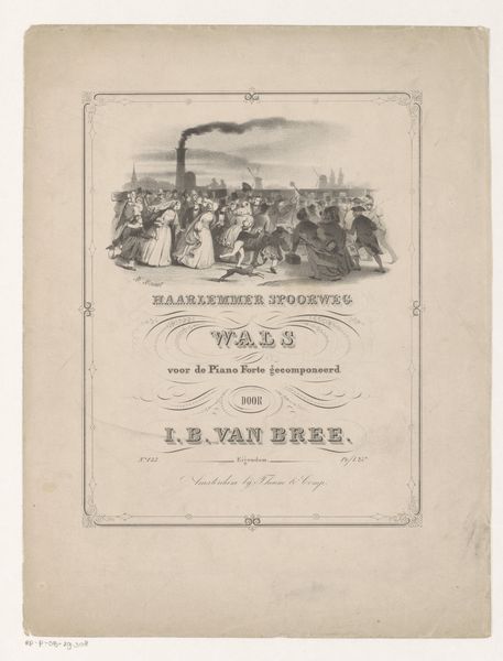 Henry Ratinckx made this lithograph titled "Compositie ter ere van Jenneval" in 1830. It commemorates Auguste-Dieudonné Jenneval, a French actor who died fighting for Belgian independence. The image depicts a volunteer soldier, rifle in hand, standing over a cross, from which a lyre ascends in a plume of smoke. The lyre suggests Jenneval's artistic life as a playwright and performer. Crosses typically mark graves and evoke Christian sacrifice. This imagery positions Jenneval as a Christ-like figure martyred for the cause of freedom. Made during a period of intense political upheaval, this print reflects the liberal, pro-independence sentiments gaining momentum in Belgium. As an artwork, this lithograph contributes to the creation of national heroes and the consolidation of a new Belgian cultural identity. To understand this work better, scholars consult archives, political pamphlets, and popular songs from the period. Through this research, art history reveals the complex interplay between art, politics, and social change.