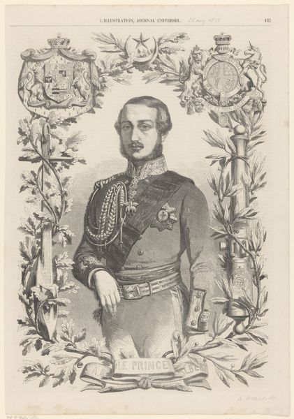 Editor: So, here we have Marie-Alexandre Alophe's 1854 graphite portrait of Prince Frederick Henry Albert of Prussia, residing here at the Rijksmuseum. There's something quite melancholy about the way the graphite renders the prince's gaze and shadows, almost like he is longing for something out of reach. What do you make of it? Curator: Melancholy is an astute observation. Perhaps the artist sensed a certain… weight? Portraits are never simply about capturing likeness. Consider, the swirling graphite almost gives him the quality of a phantom. Is it a celebration of royalty, or something more complicated? What do you feel when you see his face? Editor: It feels very...buttoned up, rigid. Like he's performing royalty rather than just *being* royal. Curator: Ah, there it is! Exactly! The layers of uniform and medals speak volumes, don’t they? Think about what the Romantic era meant at that time. Was it a celebration or mourning for bygone days? And where did Prince Albert sit within that cultural tide? Perhaps both at once. The shading and depth speak to something more internal too, don't you think? The almost wispy graphite strokes seem at odds with the subject matter. It adds to the feeling of internal struggle despite the grand exterior. What do you see that tells you of his duty? Editor: Definitely all the decorations and his formal pose. And the sword! I almost missed that. Seeing them altogether creates an undeniable image of duty and authority. Curator: So, perhaps this image contains his story in this time. Alophe brilliantly juxtaposes the fleeting nature of graphite with the enduring symbolism of royalty. What have you enjoyed most from our discussion, may I ask? Editor: I didn't expect a portrait to say so much. Now I feel like I know Prince Albert's essence in this single snapshot, thanks to you!