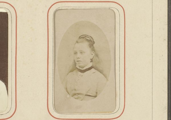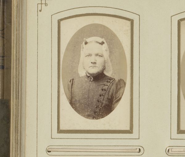 Editor: We're looking at "Portret van een vrouw," or "Portrait of a Woman" by Bernardus Hendricus Christophorus Brugman. It's a photograph, dating from sometime between 1875 and 1911. It's striking how composed and… reserved the subject seems. What can you tell me about it? Curator: This portrait provides a fascinating window into the visual language of the late 19th century and the social expectations surrounding women, especially within the emerging middle classes. Look at her tightly pulled-back hair, the high neckline, and the absence of any overt expression of joy or defiance. How does this imagery align with the contemporary social discourse around women's roles at the time? Editor: I guess it speaks to ideals of domesticity, but I wonder about her personal experience beyond that. Curator: Exactly. Photography during this period was heavily influenced by class and gender dynamics. Access to portraiture was a marker of status, but more importantly, it framed the subject, especially women, within specific ideological constraints. Notice how the composition directs our gaze—do you find yourself wanting to know more about the artist or sitter? Editor: Probably the sitter more, as she is nameless for us. Curator: Indeed, so, how can we interpret her expression within the limited agency afforded to women of that era, or could it reveal some act of quiet resistance? Her lace collar, her pose -- details like that can reveal her social aspirations. Do you see any indicators of social aspiration here? Editor: Her clothes are nice and modest. This image feels less about unique beauty and more about reflecting social respectability, something more accessible to a broader population at the time, maybe. I've definitely learned to look deeper! Curator: I'm glad to hear. Recognizing the context of an image like this makes it resonate differently.