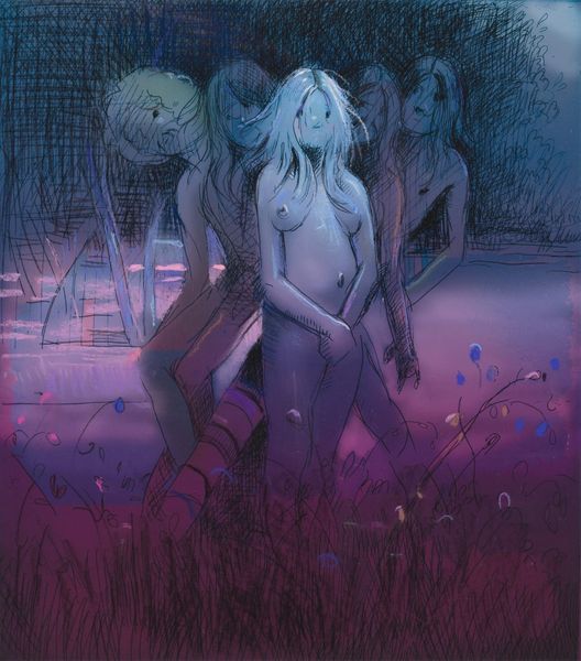 Editor: Okay, here we have "Lady Phantom - Comic Book Cover" from 2020, by Robert Sammelin, clearly a digital piece. It’s got this really striking comic book vibe, the figures poised dramatically. It feels...nostalgic, maybe a little retro-futuristic? What do you see in it? Curator: Nostalgic is spot-on! It has that slightly gritty feel, almost like newsprint aged just right. I keep getting pulled back to the minimal color palette. That limited range really amps up the tension, right? Like a film noir bathed in… raspberry juice? Makes me think, what kind of story would you imagine unfolding from this image? Editor: Something with suspense and mystery, definitely! The two characters look ready for anything, or maybe in the middle of something dangerous, do you think they might have complementary or diverging motivations? Curator: Ooh, I love that. Diverging motivations – suddenly the composition pops even more. See how she's all angles and action, this larger than life superheroine, while he's more grounded, almost hesitant. But there's that matching set of pistols. They are linked somehow. Maybe he is there to balance her. The tension of these character positions in this comic cover – what a rush! Editor: The angles create an immediate sense of urgency! That retro color scheme makes me wonder if this artist draws on anything, in particular, that could inspire new and broader conversations. Curator: I mean, it has strong allusions to vector graphics with that color treatment. Very clean, very direct – in a way that emphasizes the line work itself. I bet this artwork lives and breathes within other, similar creative economies, so to speak, by alluding to broader design and graphics subcultures. What about you? Where does this take your imagination? Editor: It’s a fun thought to consider all those avenues that inform the present artwork. I initially saw it as a striking image that evokes feelings of mystery. Curator: Totally. But it's also interesting when an artist tips their hand about other communities! That kind of thing keeps the artwork alive beyond the canvas…or the screen.