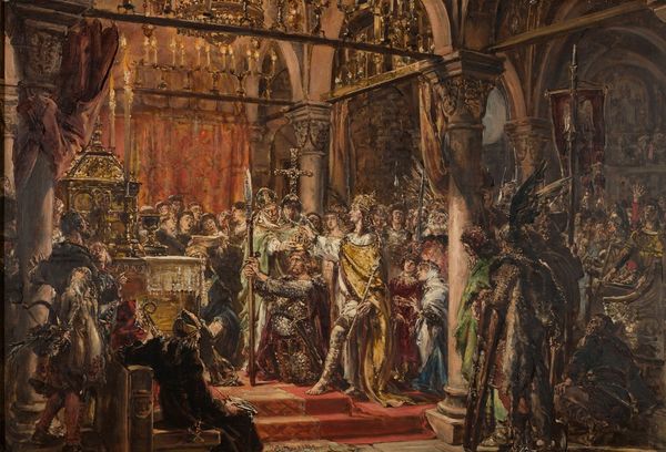 Cesare Auguste Detti painted this scene of Henri III received by Doge Muccinigo at the Foscari Palace. We might consider it in the context of French-Italian relations and the place of spectacle in solidifying political power. Here, Detti represents a specific historical moment with the kind of detail that speaks to his later nineteenth-century audience’s interest in historical accuracy and pageantry. Notice how the artist meticulously renders the architecture of the Foscari Palace and the clothing of the dignitaries, which is intended to evoke a sense of historical authenticity. But the painting also reflects the artist's present. In its own time, the painting serves as a reminder of past power and perhaps a commentary on the then-current political landscape of Europe. To fully understand the painting, one might research the political climate of both 16th-century France and late 19th-century Europe and consider the function of historical painting within the institutions of art at that time. Through this we can see art as part of an ongoing dialogue between past and present.