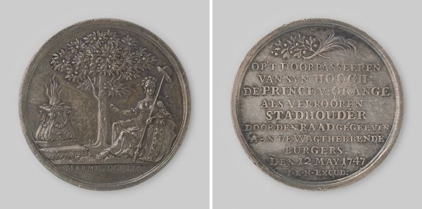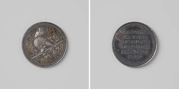 This medal was made in 1800 by Johan George Holtzhey to commemorate the fiftieth anniversary of Jan Adriaan van Eyk's factory. The medal presents a symmetrical composition, divided into two distinct sides, each making use of carefully arranged text and imagery. On one side, we observe the structured arrangement of symbolic elements such as trees and barrels, which are vertically ordered. These elements frame the inscription of Jan Adriaan van Eyk's name. This ordering of space and symbols invites us to consider how meaning is constructed. The other side of the medal is dominated by neatly aligned text, a radiant sun and a laurel wreath which encircles a monogram. These elements, while distinct, work together to create a unified visual statement. The medal does more than just celebrate an anniversary; it invites reflection on the relationship between art, industry, and cultural memory.
