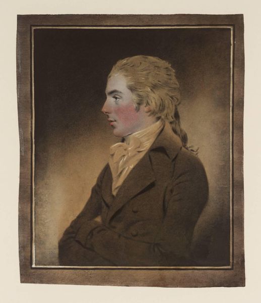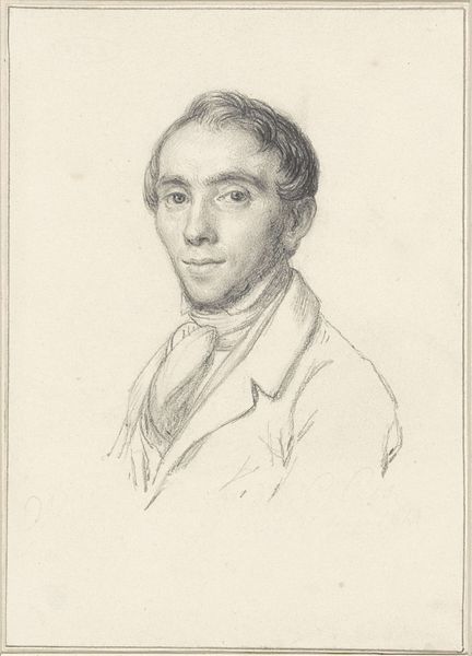Editor: Here we have Thomas Lawrence's pencil drawing, *Benjamin Rouse, Junior,* created in 1813. It's such a delicate portrait. The subtle shading gives the subject an almost dreamlike quality. What strikes you most about this piece? Curator: Ah, yes, Lawrence captures something fleeting, doesn't he? It feels as though we've caught Mr. Rouse in a moment of private reverie. Notice how Lawrence uses the pencil, almost like soft charcoal, to build up tone, especially around the face and collar. There's a distinct Romantic sensibility at play – the focus on individual feeling, a hint of melancholy perhaps? Editor: I see that. There is a certain softness in his gaze. Curator: Exactly! It’s as if Lawrence wants us to connect with the inner life of his subject, rather than just presenting a likeness. Do you think it achieves that? Do you feel you can "know" something about Benjamin Rouse through this image? Editor: I think so, there's an openness in his eyes, almost an invitation to connect. I do also find myself wondering about the choices for the hair and costume – quite of the era. Curator: Definitely! And it makes me think of how portraiture at this time was about conveying status, but also, increasingly, about psychology and character. Lawrence really mastered the art of implying a depth of personality, wouldn't you agree? Editor: I completely agree. It’s fascinating how a simple pencil drawing can be so revealing. Curator: It reminds us that art isn't just about what we see, but what we feel and imagine in its presence, isn’t it? This work is so successful at drawing the viewer in!
