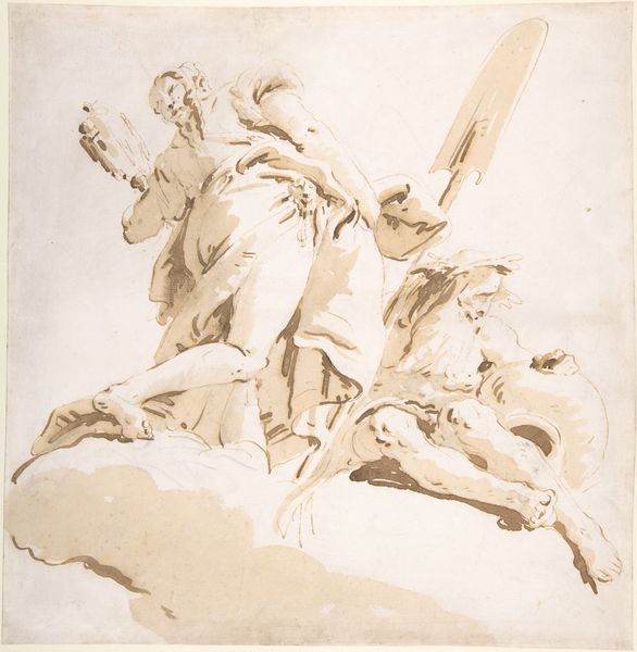 Giovanni Battista Tiepolo created this drawing, The Last Communion of St. Jerome, with pen and wash. Here we see Jerome, kneeling and receiving his final communion, attended by an angel, with cherubs above. Tiepolo made this drawing in Venice, a city that maintained independence into the 18th century through a careful diplomacy, balancing the great empires of Europe. Venice was also a notable center for art, and its artists, like Tiepolo, were known for their mastery of color and light, as well as their skills in creating dynamic compositions. The Catholic Church was a major patron of the arts, commissioning works that reinforced its doctrines. In this drawing, Tiepolo employs a dynamic composition and dramatic lighting to convey the emotional intensity of the moment. To understand the social conditions that shaped this work, scholars consult sources such as period documents and religious texts. The meaning of this artwork is not fixed but evolves through history, in relation to its social and institutional contexts.