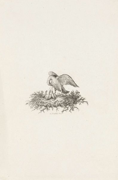 Editor: Here we have "Magpie," an etching by Charles-François Daubigny, from 1843. It depicts a magpie near some water with a rather lovely landscape behind it, and there's a quiet, contemplative mood to it. What do you see in this piece, beyond the immediate subject matter? Curator: Beyond the simple representation of a bird in a landscape, I see Daubigny engaging with the fraught relationship between humanity and nature during the Industrial Revolution. The magpie itself, often viewed as a creature of folklore, a trickster, is placed on the periphery of industrial society—symbolized by the hint of buildings in the distance. Does the bird represent those who have been marginalized? Editor: That's interesting; I hadn’t considered that. The magpie just seemed to be sitting there. So, you see the bird not just as a bird, but also as a potential symbol for the displaced? Curator: Exactly! Think about the context: the 1840s in France were a time of social and political upheaval. The shift towards industrialization caused massive displacement, reshaping gender and class structures. Daubigny, as a keen observer of his time, may be using the magpie as a visual metaphor for those left behind or otherwise disregarded in this new era. Do you see how the composition isolates it somewhat? Editor: I do now that you point it out! It’s almost like it's guarding the natural world against the encroachment of the industrial one. The bird almost becomes an emblem of resistance, wouldn’t you agree? Curator: Precisely! And in that resistance, we find a potential link to contemporary environmental and social justice movements. What connections might viewers draw to contemporary issues related to environmental damage? Editor: This has given me a completely different lens through which to view 19th-century art! Seeing how historical contexts affect artistic choices helps everything click. Curator: Agreed, and by engaging with this context, the work transforms from a simple landscape to a potent commentary on power, identity, and our evolving relationship with the environment.