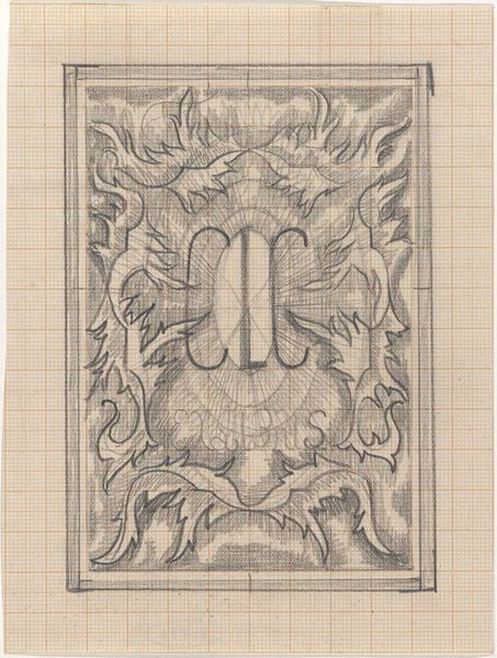 Editor: This is “Decoratief ontwerp” by Carel Adolph Lion Cachet, probably created sometime between 1874 and 1945. It's a drawing in watercolor on paper and it strikes me as intentionally unfinished, like we're looking at the blueprint for something larger. What can you tell me about it? Curator: You’ve touched on an important point. This work offers a glimpse into the design process itself. Note the grid. Cachet seems less concerned with creating a finalized aesthetic object and more with meticulously mapping out a repeating decorative motif. This reveals a shift in how we view art's purpose within the broader social structure of the time. Instead of high art, meant only for wealthy patrons, you now see artists creating designs intended for wider, possibly even mass production. Where might we expect to find this pattern? Editor: Perhaps wallpaper or some sort of textile? Something functional rather than purely aesthetic? Curator: Precisely. Now consider this: How does the “unfinished” nature, the very display of the working grid, potentially influence how the *public* views the role of the artist? Does it demystify the creative process? Editor: It does. It almost makes it seem like anyone could reproduce this pattern, democratizing design, perhaps? I hadn't considered the power dynamics at play here, the role of design and production itself. Curator: Exactly! It's not merely a pretty design, but a document of the changing role of art in society, reflective of burgeoning industrialization. Looking closely reveals so much more than simply meets the eye, wouldn't you agree? Editor: Absolutely. I will never look at decorative arts the same way.