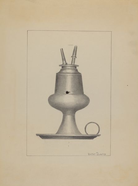 Janet Riza drew this lamp with graphite on paper. While the medium itself is quite traditional, the subject matter is not. The image appears to be a study of a utilitarian object, and not necessarily an artwork in and of itself. The drawing's realism serves to emphasize the lamp's material presence. Graphite, with its metallic sheen, mimics the lamp’s likely construction from metal. The tight, controlled lines suggest careful observation and an interest in form and function. Look closely, and you can see the artist has taken great care in rendering the subtle gradations of light and shadow, giving the lamp a three-dimensional quality. The choice to depict a common household item elevates the everyday to the level of art, blurring the lines between design and fine art. It invites us to consider the craftsmanship and aesthetic qualities inherent in even the most functional objects. This piece reminds us that beauty can be found in the ordinary, and that the act of careful observation can transform the mundane into something worthy of artistic attention.