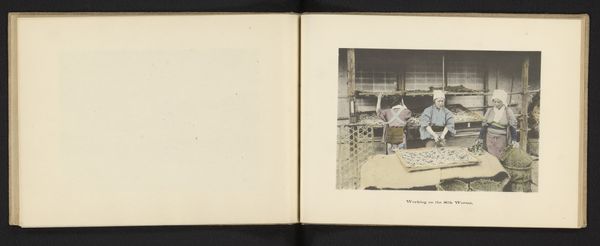 This photograph by Kōzaburō Tamamura captures a moment of traditional Japanese greeting within a domestic setting. Notice how the composition emphasizes horizontality, with the tatami mats creating strong parallel lines that lead our eye deeper into the space. The subdued palette, punctuated by the soft greens and purples of the women’s garments, creates a serene and formal atmosphere. Tamamura uses the geometry of the room to frame the subjects, positioning them at precise points along these lines to emphasize the ritualized nature of the greeting. This formal arrangement, combined with the muted tones, conveys a sense of measured grace, reflecting the cultural values of respect and decorum. The symmetry and balance in the composition invite us to consider how social interactions are structured and performed. The visual language of the photograph underscores the significance of spatial arrangement in shaping cultural expression and human interaction.