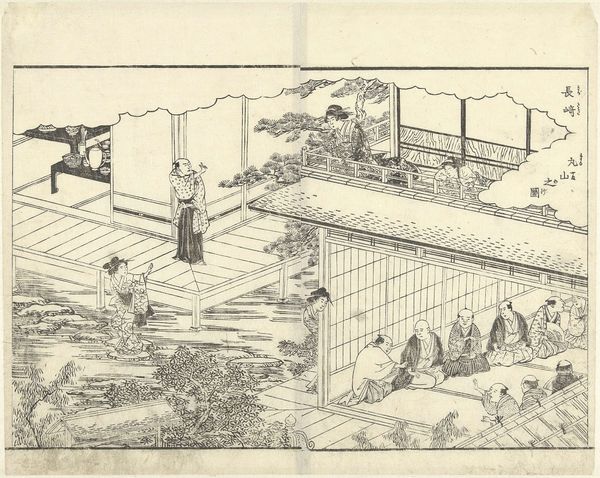 Curator: Welcome. Before us is a captivating ink drawing by Hishikawa Moronobu, a celebrated master of Ukiyo-e. This piece, "Dame gezeten in een vertrek voor een tafel, waarop twee boeken en schrijfgerei liggen," whose title translates to "Lady seated in a room before a table, on which lie two books and writing utensils," likely dates between 1628 and 1694 and resides here at the Rijksmuseum. Editor: My immediate impression is one of quiet contemplation. There's a wonderful stillness conveyed through the delicate lines; the sparse detail invites you to imagine the texture of her robes and the paper, consider how material comfort intertwines with the artist's choices. Curator: Precisely. We observe a seated woman amidst the paraphernalia of literacy and artistry, indicative of the increasing importance of women in literary culture during the Edo period. How does her image conform to the social construction of gendered ideals through objects of consumption and cultural practice? Editor: We see her surrounded by these items: books, inkstones, writing implements... The labor and value invested in those materials speak volumes. And, let's not ignore the elaborate kimono. It’s more than just clothing; it is a status symbol, woven with narratives of societal expectations and artisanal craftsmanship. How did women negotiate social roles via objects they owned or the processes associated with maintaining, caring for, and interacting with such articles? Curator: Absolutely. Moreover, Ukiyo-e art served not just as a means of artistic expression, but also as a reflection and promulgation of contemporary ideals concerning femininity and beauty. Looking at the cultural politics embedded in Ukiyo-e imagery offers valuable perspective on historical representation and female empowerment in this historical moment. Editor: Her calm disposition speaks of domestic productivity, subtly implying what productive, upper-class labor meant. Her image embodies how art functions not in isolation, but intersects within wider contexts concerning labor and gender. Curator: Agreed. The way that Moronobu depicts the scene also contributes to a visual language used to communicate status and learning. By examining how individuals negotiate social constructs with consumer practices, how this is represented in a drawing—it becomes clear how we see cultural ideals produced visually. Editor: Seeing how our different takes are linked brings me a different way to view Japanese traditions. Thank you. Curator: The pleasure was all mine; our dual interpretations shed more light on this remarkable artwork.
