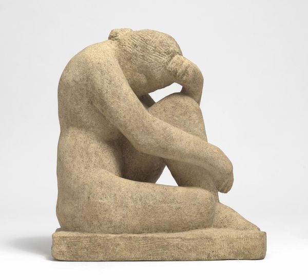 Editor: This is Carpeaux's "Neapolitan Fisherboy", sculpted in marble sometime after 1857. The figure’s so lifelike and full of playful energy. He's holding a shell to his ear and smiling – what do you make of it? Curator: I see a romantic reimagining of youth and innocence, echoing classical ideals but also hinting at something deeper. The shell is fascinating— a potent symbol. In art, shells often represent pilgrimage, or the goddess Venus. But the Fisherboy *listens* to it; do you think that affects its meaning? Editor: Definitely! He's actively engaging with it, trying to hear something within, as though he’s listening for the secrets of the ocean. Maybe it suggests a connection to a place? Curator: Precisely. Remember Naples has always been perceived as an escape, a place of hedonism. The boy could represent an allegory for someone searching for beauty and maybe danger. Notice the pose --he seems to be offering us that interior world by revealing that the music from the seashell. It's like the music opens a hidden narrative, full of wonder and risk. Do you feel that it’s unique, or perhaps belongs to something larger? Editor: Hmm…Well it’s not overtly religious. Perhaps this captures a search for belonging, maybe tied to ideas of identity? Curator: Exactly! Visual motifs aren't stagnant; their meanings evolve with us. Symbols become vehicles to traverse individual consciousness and cultural memory. A synthesis of emotion, heritage and experience… That boy, even in marble, makes me think of summers spent listening to the sea. What a powerful connection that is. Editor: That makes me think about all the things this artwork doesn’t show and suggests there is a deeper well of possible interpretations of what this fisherman represents!
