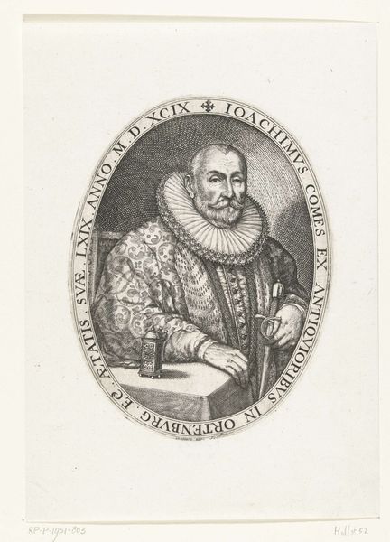 This is Hendrick Goltzius’s “Portret van Adriaan van Westcapelle,” an engraving likely made in the late 16th century in the Netherlands. The image presents a man of some status, judging by his elaborate ruff and fashionable hat, encircled by an inscription naming him and stating his age. Prints like this one played a crucial role in shaping social status during this period. Goltzius was a leading figure in Haarlem, a city experiencing rapid economic growth through trade and textile production. Here we see the values of a newly powerful merchant class. The print flattens the sitter into a two-dimensional likeness, an abstract image of status that could be easily reproduced and disseminated. To understand this work better, we might research the social hierarchy of Haarlem at the time, and the role of portraiture in constructing identity. The print is a fascinating historical document, reflecting the social and economic conditions of its time.