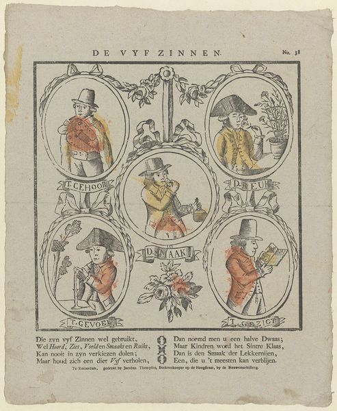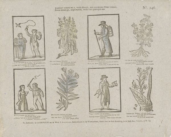 Gerrit Oortman created this print, "Hoe wordt dit schoon geboomt' verzorgd, door maagden en door knapen!" sometime before his death in 1822. It’s a hand-colored engraving which seems to speak to a celebration of nature and youth. Made in the Netherlands, the print shows young people tending to trees, with some in the branches and others at the base, one asleep. The Dutch Golden Age had long passed, but the cultural fascination with nature and idyllic scenes remained. The paired images and accompanying text suggest a commentary on the seasons or the stages of life, common themes in Dutch art. We might see this as a reflection on social harmony, with each person contributing to the care of nature. To fully understand Oortman’s print, we would want to delve into the popular culture of the time, looking at similar prints, poems, and songs. The Rijksmuseum's collection, along with period literature, would provide valuable context. The meaning of this artwork lies not just in its visual appeal but in its connection to the social and cultural values of its time.