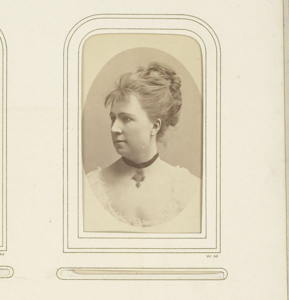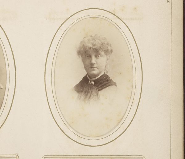 Curator: Looking at this, I feel a strong sense of formality, almost a suppressed story waiting to be told. Editor: It’s fascinating, isn't it? This is a portrait of Anna Maria Klemming, captured between 1882 and 1889 by Gustaf Alfred Johanson Dahllöf. It is a photograph. Curator: The monochromatic tones give it a ghostly feel. It speaks to the constraints placed on women in that era, both visually in terms of pose and probably more broadly in life. How complicit was she in this construction? Editor: Considering photographic portraits like this were increasingly available to a wider demographic by that time, one must consider the industrial aspect. This was not a painting; it was mass-produced in a way that a painted portrait never could be, altering accessibility for representing oneself. The cost and labor differences must have changed the value of portraiture and the very means by which we perceive it. Curator: Yes, absolutely, but it still speaks of status. What did it mean for Anna Maria to present herself in this way? How did it reinforce or challenge existing gender norms? This could reflect something very personal to her – did she find empowerment or constraint in this image, or within the technological access this process availed? Editor: The material context emphasizes that portraits weren't only for the elite anymore. Photography offered new forms of self-expression and documenting, although, admittedly, still with parameters. Who was this for? A family album? A calling card? How was it materially circulated? It matters. Curator: Those are critical considerations. Thinking about portraiture itself—then and now—helps us contextualize image creation within systems of power and representation, both historical and modern. What endures is this quiet act of self-presentation—her attempt to assert something about her identity. Editor: It's the layering of the chemical process, photographic paper, and distribution that bring in more complexity. Considering photography was groundbreaking in production techniques, this should have had far-reaching effects in social settings and beyond just capturing images. Curator: Indeed. This single photographic print gives us just a small, tantalizing window onto the changing world around it, and that transformation helps give new and ever changing views through the present day. Editor: Agreed. Material analysis is crucial for contextualizing our view of this transformation, as is our broader social and economic landscapes of these times.