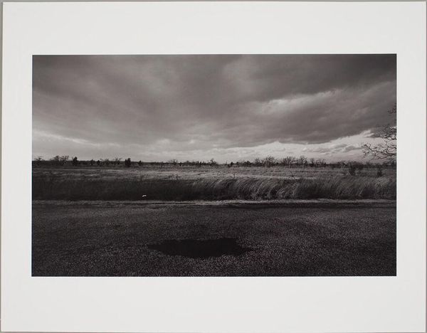 Curator: Here we have a photograph, Route 25A, East of Riverhead, by Per Brandin, part of the Harvard Art Museums collection. Editor: It feels stark, almost desolate, despite being a landscape. The repetitive patterns of the crops are quite striking. Curator: Indeed. Brandin’s use of black and white emphasizes the formal elements: the lines of the road, the rectangular shapes of the fields. It’s a study in geometric composition. Editor: Yet, the crops themselves evoke a sense of abundance, resilience. The land yielding sustenance, a timeless symbol of hope and provision. Curator: I’m not sure I perceive hope here. To me it speaks more about structural austerity in the face of nature. Editor: Perhaps both are present. It is a compelling piece which uses visual patterns to create a sense of complex tension. Curator: I agree; the formal structure allows diverse interpretations to take root.