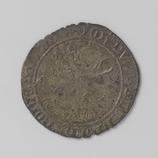 Editor: This object is the Groningse Vlieger from 1560, crafted from metal with engraving. It’s a small, somewhat damaged coin. I’m struck by the imagery; it seems quite grand for something so small. How should we interpret this kind of object? Curator: This isn't just currency; it's a declaration. Currency functioned as propaganda, visually reinforcing the issuer’s power. The 'Groningse Vlieger' demonstrates the city's desire to assert its autonomy during a politically fraught time. Do you notice the eagle? Editor: Yes, a prominent double-headed eagle in the centre, above what looks like a shield? Curator: Exactly! The double-headed eagle, an imperial symbol, makes a bold claim. For Groningen, a city striving for greater independence from larger powers, to adopt such iconography sends a clear message about their aspirations. Editor: So, even everyday objects were invested with political significance? How did the public perceive it? Curator: Absolutely. Its impact likely shifted based on social status. Common people viewed it as money. Political elites immediately grasped the implied symbolism, and perceived aspirations of control by Groningen. Editor: I see. The visual language broadcasted power to some, while others engaged on a purely transactional level. I guess I had never really thought about coins having different social roles. Curator: It forces us to consider how even mundane objects operate within power structures, consciously or subconsciously shaping perceptions and narratives. Editor: That's fascinating. Thanks for sharing your perspective! I see this Vlieger, not just as metal now, but as an intriguing artifact of history.