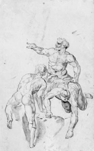 Curator: This intense graphite and charcoal drawing captures a powerful moment, it's a copy after Rubens of the classical sculpture Laocoon, placing it somewhere between 1600 and 1640. It resides here at the SMK, Statens Museum for Kunst. What are your immediate thoughts? Editor: The sheer muscularity leaps out – a study in torsion and agony. The way the light catches those straining muscles is almost unbearable, it feels like a physical assault. It is such a monumental sense of struggle captured on paper, all in monochrome. Curator: It’s worth considering that Rubens, steeped in the humanist traditions, would have viewed the Laocoon sculpture as the epitome of human suffering and resilience. This copy, even removed from the original context of the Trojan War, still resonates with profound themes. It prompts reflections on power, oppression, and the vulnerability of the human body. Editor: Precisely. I find it impossible to separate this image from discussions surrounding the body as a site of struggle – historically, religiously, politically. Consider the era – early 17th century. Who had the power to portray, to sculpt, to immortalize such forms? Whose stories were being told, and whose bodies were erased or demonized in the process? The whiteness, the idealization, these choices inherently reinforce power dynamics. Curator: True. However, the act of copying itself suggests a democratizing impulse, or perhaps a didactic one. It’s Rubens engaging with and disseminating classical ideals. And think about the function of drawings within artistic workshops at that time. Copies allowed artists and their assistants to study and learn from established models. But I do see the tensions inherent in representing idealized bodies at a time of massive social and political upheaval. Editor: Indeed, but is this representation only an aesthetic appreciation? I wonder if the visual drama might unconsciously reiterate prevailing biases in society: who embodies the ideal and therefore is seen as more deserving of recognition or agency? The way the body strains, writhes even, speaks not just to classical ideals of male form, but speaks to a very violent tension as well. The act of re-creating this scene also means re-inscribing the violence inherent in it, wouldn’t you say? Curator: Certainly, a valid point. And while Rubens likely sought to elevate the human spirit through classical allegory, we cannot overlook the fact that this portrayal of pain and suffering, removed from its historical context, carries complicated baggage. Editor: Ultimately, a powerful reminder that art, even copies, are always enmeshed within networks of power and representation. Curator: Yes, and by interrogating that entanglement, we unlock further understanding.