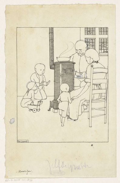 Made in 1914, this Pochoir print on paper by Monogrammist MFN, presents a scene of domestic tranquility. The composition is structured around a central figure, the seated woman, with vertical lines and a balanced arrangement of figures and objects. The stylized lines and patterns, from the floral motifs on the chair to the geometric wallpaper, create a decorative surface. The artist flattens the space, emphasizing a play of surfaces over depth. This flattening is reinforced by the limited tonal range, focusing attention on the graphic quality of the design. The work functions as a semiotic system, where each element, from the clothing to the interior setting, signifies aspects of contemporary Parisian life and fashion. Yet, the reduction of form and emphasis on surface anticipate later modernist trends. The artwork serves as a moment of transition, embodying both decorative elegance and nascent abstraction.