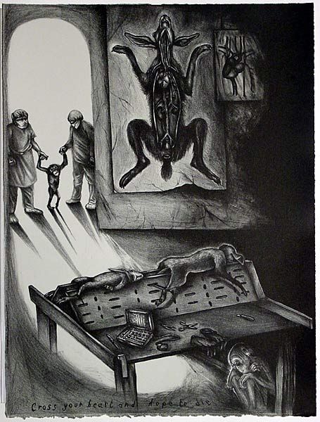 This untitled work by the Kukryniksy collective presents a stark, monochromatic scene rendered with ink on paper. The composition is dominated by a stark table around which skeletal figures are gathered, a visual metaphor that immediately evokes themes of death and futility. The artists employ a strategic use of line and form. Note the contrast between the rigid lines of the crosses bearing German helmets and the fluid, almost caricatured depiction of the figures. This contrast serves to undermine the visual rhetoric of power, turning it into a macabre joke. The helmeted skeletons suggest a critique of military might, reducing symbols of authority to mere bone. Consider how the visual language here serves to destabilize traditional notions of heroism. Through their formal choices, the artists engage with a larger discourse on the human cost of war. This artwork remains a potent commentary on the legacy of conflict.