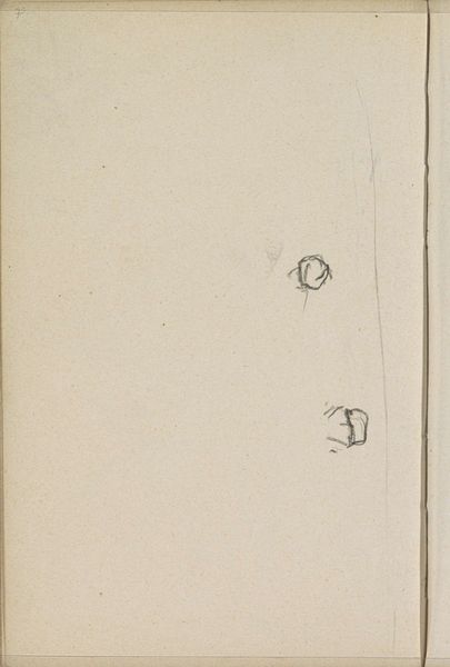 Curator: This is "Studie," a drawing by George Hendrik Breitner, likely created between 1886 and 1908. It's currently housed here at the Rijksmuseum, rendered with pencil on paper. Editor: Hmm, interesting. It's incredibly faint. It almost feels like a half-forgotten memory sketched on a dusty page. What are we actually looking at here? Curator: Breitner was deeply influenced by Impressionism. While this drawing, of course, lacks the vibrant colors typically associated with the style, there is a profound focus on capturing fleeting moments and sensations. We see landscape elements, even a hint of figuration in the fainter sketches, combined with his emphasis on observation rather than highly rendered realism. Editor: True. There is something hauntingly transient about this drawing. The formal elements - the sparseness of the marks, the stark contrast of the lone little figure, almost dissolving. Curator: Absolutely. The application of pencil is used almost as if he is suggesting elements. Look at the interplay between areas where his touch is quite light and others with far more definition, guiding us towards potential focal points in what he depicts. Editor: Is there something particularly important to know of about Breitner to have in mind as we look at his piece? Curator: Considering his well-documented work capturing the bustling city life of Amsterdam, I find myself wondering what scene he was thinking of or trying to remember, while jotting down these details. You might even suggest a subtle narrative hidden within its delicate lines. Editor: I understand what you're saying. Ultimately, perhaps the most crucial insight here stems from what seems only like suggestive form, a work so ephemeral; however, we can now engage with this art on a profound, albeit faint level, appreciating its understated poignancy. Curator: Yes, and for me, I always see something so pure and real, where art, as it almost becomes less tangible and ephemeral, touches closer to lived realities.