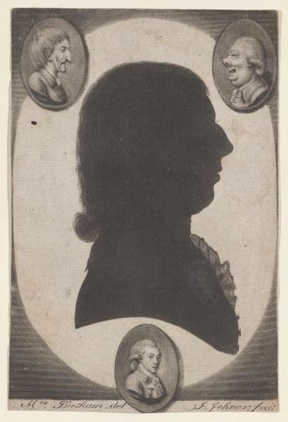 Editor: This is Eric Gill’s portrait of Ruth Lowinsky, rendered in monochrome. I’m struck by its stark simplicity and the subject's composed, almost stoic expression. How do you see this work interacting with the social context of its time? Curator: Gill's work often challenged prevailing artistic norms. This portrait, while seemingly traditional in its silhouette format, also speaks to the rising interest in modernist aesthetics during the early 20th century. The strong lines and limited color palette reflect a departure from ornate Victorian portraiture. Editor: That’s interesting. So, its simplicity was actually quite radical? Curator: Exactly. It suggests a shift in societal values, perhaps a move away from excessive displays of wealth and status towards a more streamlined and functional approach to representation. Consider how the image might have been received alongside more conventional portraits in galleries or private collections of the era. Editor: I hadn't thought about it that way. Seeing it as a statement against excess makes a big difference! Curator: Indeed, and that tension, that push-and-pull between tradition and modernity, is crucial to understanding Gill's wider artistic project.