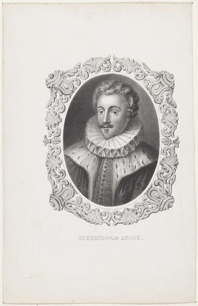 Curator: Looking at this graphite drawing, dating from about 1820 to 1830, what strikes you first? It’s called *Portret van Nicolas IV de Neufville de Villeroy*. Editor: There's something austere yet romantic about this portrait; perhaps it’s the dramatic shading or that wonderfully antiquated ruff. I feel drawn to this individual's compelling presence. Curator: Yes, that ruff is particularly evocative; it certainly carries the weight of another era. These kinds of visual elements connect us to collective cultural memory and inform how we view figures of authority, power and their place in history. It also points towards an anachronistic revival, given the historical period depicted in the artwork versus the actual date. Editor: And that connection between image and authority is critical. Think about the social context of portraiture—the patronage, the representation of power. Who *is* depicted and why? Whose stories were privileged enough to be preserved in visual culture? Curator: Well, Nicolas IV de Neufville de Villeroy was indeed a significant figure in French history. His presence in visual form speaks volumes. That direct gaze projects confidence, perhaps even a hint of imperiousness that wealthy families wished to convey. It suggests both status and a narrative about the man himself. Editor: And how interesting that a drawing like this – in graphite – ends up in the Rijksmuseum. Usually, we see completed paintings of aristocrats and the very wealthy, not these works on paper. How might the medium itself democratize access to power, or the image of power? Was this drawing meant as preparation for something more permanent? Curator: A strong possibility. A graphite sketch has a directness, an immediacy that sets it apart from oil painting. Perhaps this was commissioned to fix the sitter’s likeness before embarking on a more lavish painting, a moment captured before the full weight of formal portraiture was imposed. We lose so much cultural memory and insight, I often wonder what a contemporary viewer, then, would make of the scene compared to us. Editor: This exploration, with all its social layers and iconographic signals, underscores why this portrait remains compelling to contemplate so many years later. I appreciate how the artist captured a nuanced and psychologically charged individual. Curator: Agreed, thinking about the historical moment through symbolic details offers us a rich field for further exploration.
