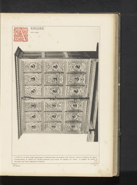 Curator: This is an ink and paper drawing, created before 1880 by an anonymous artist; the piece is titled "Twee opnames van houten koffers met ijzeren beslag" which translates to "Two recordings of wooden chests with iron fittings." My immediate impression is of containment and secrecy; a mute testimony of another age, full of stories we can now only imagine. Editor: I see two distinct forms; one on top is quite boxy, like a small architectural model sitting above a larger grid. Below is an open, seemingly inviting version, yet both are secured, protected, one even adorned with shapes. I see a contrast in the execution. Curator: Absolutely. Think about what these chests represent—security, status, likely the protection of valuable items. Iron fittings would’ve been very expensive, potentially signifying the owner's wealth and status. There is a clear intersection here with societal roles and economic hierarchies. Were these for religious, commercial, or private holdings? Editor: Notice how the lines create texture; it seems they wanted to create a realistic, almost sculptural feel. Each rivet, each line meticulously rendered. I would argue this precision reinforces a formal appreciation of design over any intended narrative. Do you see any potential references to semiotic theories at play? Curator: To only observe through design diminishes the fact that material culture acts as both signifier and the signified. Chests like these also represented restricted mobility and enforced gender roles. Wealth accumulation by powerful families and institutions of the time would invariably impact women and those considered lower class, which demands exploration. Editor: That’s fair, and I concur this artwork goes beyond its mere aesthetic presentation. However, let’s note how this image presents geometric forms and repetitions that give a certain visual satisfaction. Notice how the triangle of space on the bottom chest seems deliberately rendered. The artist composed elements offering satisfying visual harmony despite its more somber implications. Curator: The drawing stands as more than geometric forms and design; its careful craft reminds us about its own era of inequalities while still challenging us to reflect today's power structures. Editor: Precisely! Art and social context combined allow for a fascinating journey of perception.