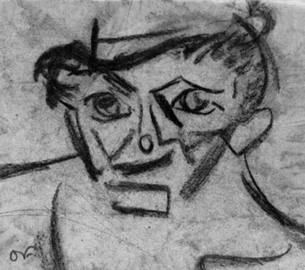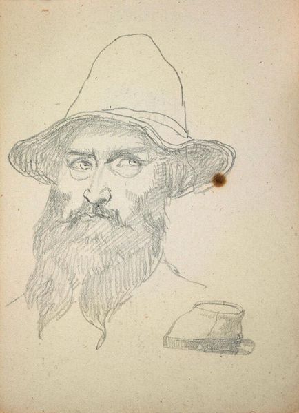 Curator: So, here we have Picasso’s 1938 pencil drawing on paper, "Man with Ice-Cream Cone." It's quite striking, don't you think? Editor: Immediately, the frenetic energy leaps out! It’s this beautiful dance of light and shadow. Almost a nervous agitation in the lines. It’s simple, but not simplistic. I see a portrait and more of a glimpse into a psyche at war. Curator: That's an interesting take! He often created art that had the intention to do just that! I see echoes of Cubism, fragmented perspective in the facial features and this loose hatching suggests not only form, but perhaps the instability brewing in Europe at that time. I feel that looking into it more the ice cream, such a banal, joyful object, is juxtaposed against a rather tormented portrait. A symbol, maybe, of fleeting pleasure against a backdrop of turmoil. Editor: Precisely! And the hat, askew, feels deliberately disheveled. It’s almost like the image of carefree enjoyment, corrupted. Think of hats and headdresses in paintings, they symbolize dignity, power, or station. Here? I read something different. Maybe an intentionally ungraceful state, as though the "man's" external appearance does not match the internal feelings. Even his eyes! Uneven, mismatched... It doesn’t evoke immediate comfort. Curator: Definitely not. Picasso’s portraits are rarely comforting, and especially during this era when art became his language to dissect the self and society! Perhaps it's also hinting at something of the performative nature of joy or, a hollow symbol. Even though the symbol of 'ice cream' is a source of happiness. A bit dark if I can add. Editor: The 'drawing' captures the moment with stark beauty; what lingers with me is how he layers conflicting emotional depths through ordinary subjects. It's almost like cultural symbols were twisted! He has created the essence of an 'icon'! He asks us about joy! Curator: True... even an object like ice cream can become quite menacing when wielded with Picasso's artistic sensibility. The man with the cone holds up our values to us... a sort of inverted image we need in order to grow and progress. Editor: And that tension, it elevates it, it's more than just paper and pencil marks. It is as though Picasso takes this simple scenario and asks what the hell does this "ice cream cone" really represent? This symbol! Curator: Well put. That final dissonance is really the strength of it!